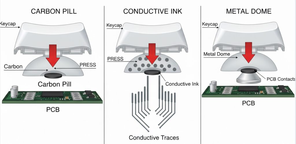 • Metal Dome: > 5 million cycles (Best for heavy duty).