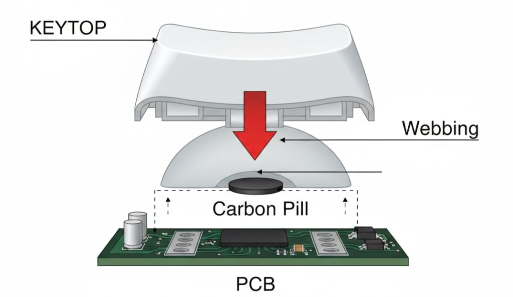 • Conductivity: Integrated conductive button technology uses carbon pills (<100Ω) or gold-plated contacts.