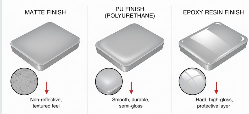 • Epoxy Coating: A thick, clear resin dome (makes the button top hard and glossy like glass).