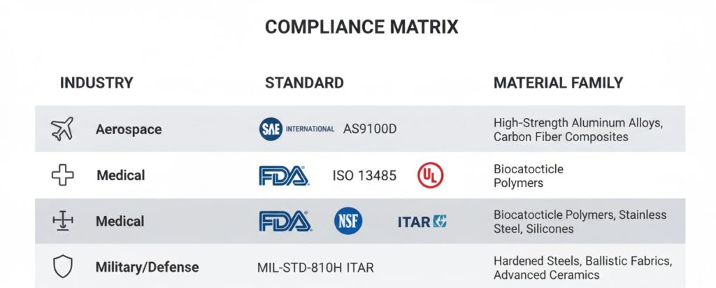 In regulated industries, a material property sheet is not enough. You need traceability and certification. We maintain a library of pre-certified compounds ready to meet the strictest global standards.