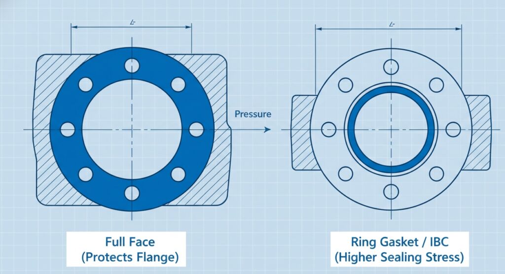 The geometry of your hardware dictates the type of seal you need. Choosing between gasket rings (Ring Type) and Full Face gaskets is critical for preventing flange damage.