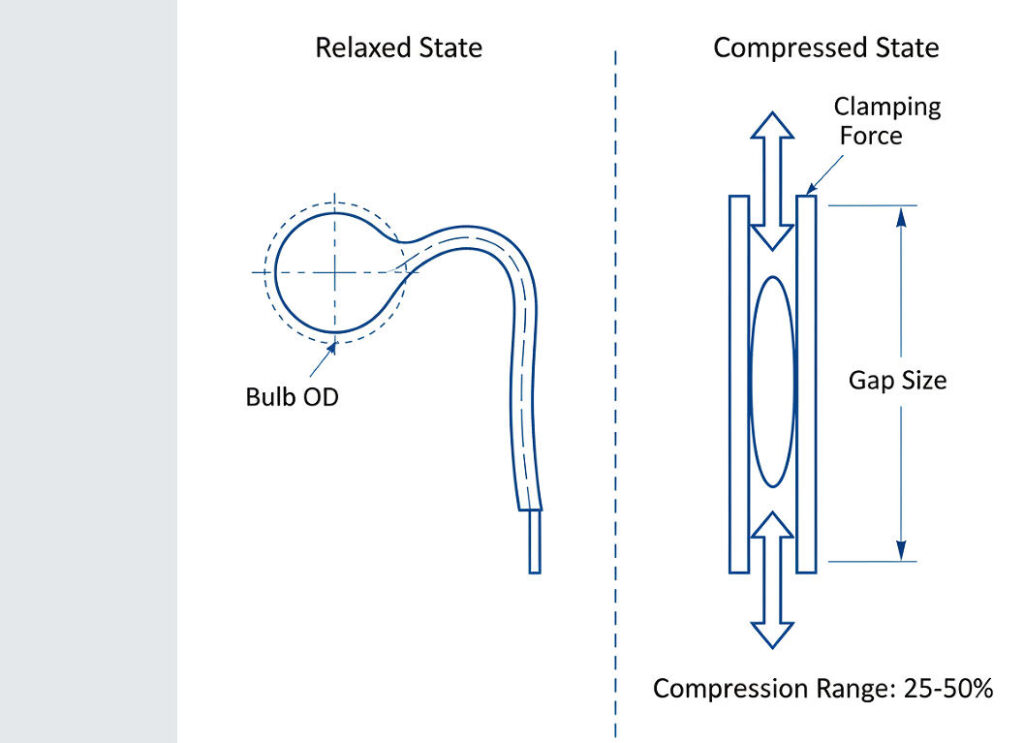 Ideal Bulb OD = Gap Size ÷ 0.75 (for ~25% compression)