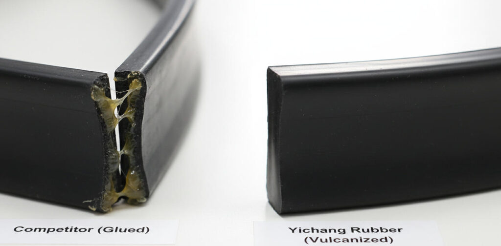• Our Solution: We use Hot Vulcanized Jointing. We place the cut ends into a mold and inject uncured rubber, heat-fusing them into a single, continuous loop or frame.