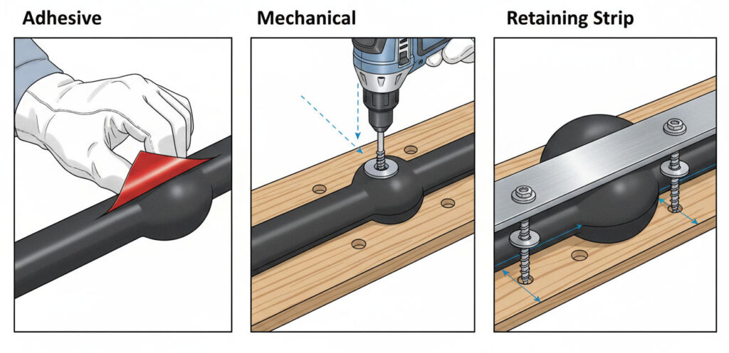 • Critical Tip: Always use a washer or a metal backing strip with your screws. This distributes the pressure and prevents the screw head from tearing through the rubber over time.