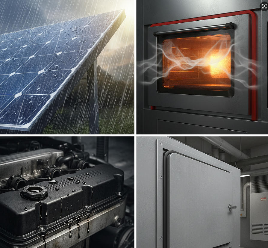 • Why: Standard rubber will melt or crack above 250°F. These profiles withstand temperatures up to 450°F+ (230°C+).