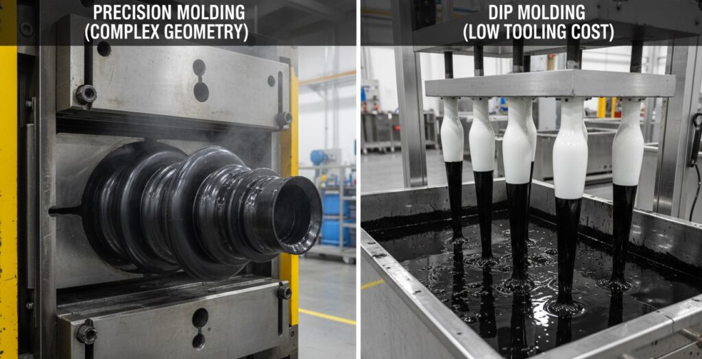 | Feature | Compression/Injection | Dip Molding |