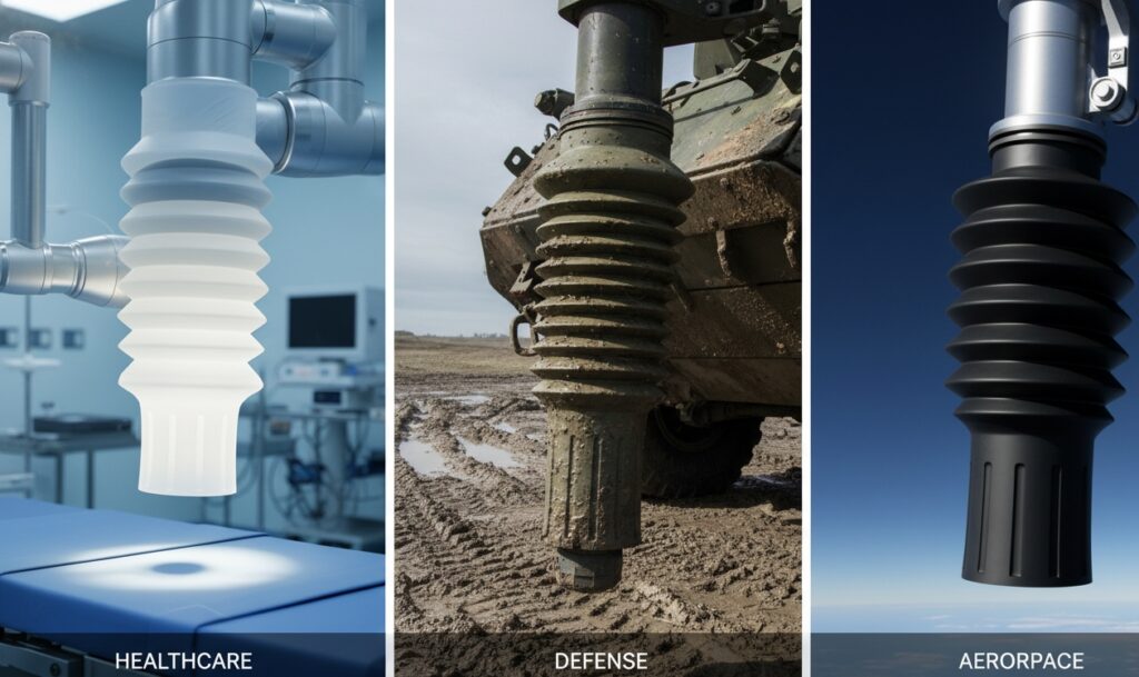 Unlike generic off-the-shelf parts, our bellows are engineered for specific stroke-to-compressed ratios and environmental extremes. Whether you are designing a surgical robot or retrofitting a military transport vehicle, we provide the protection you need.