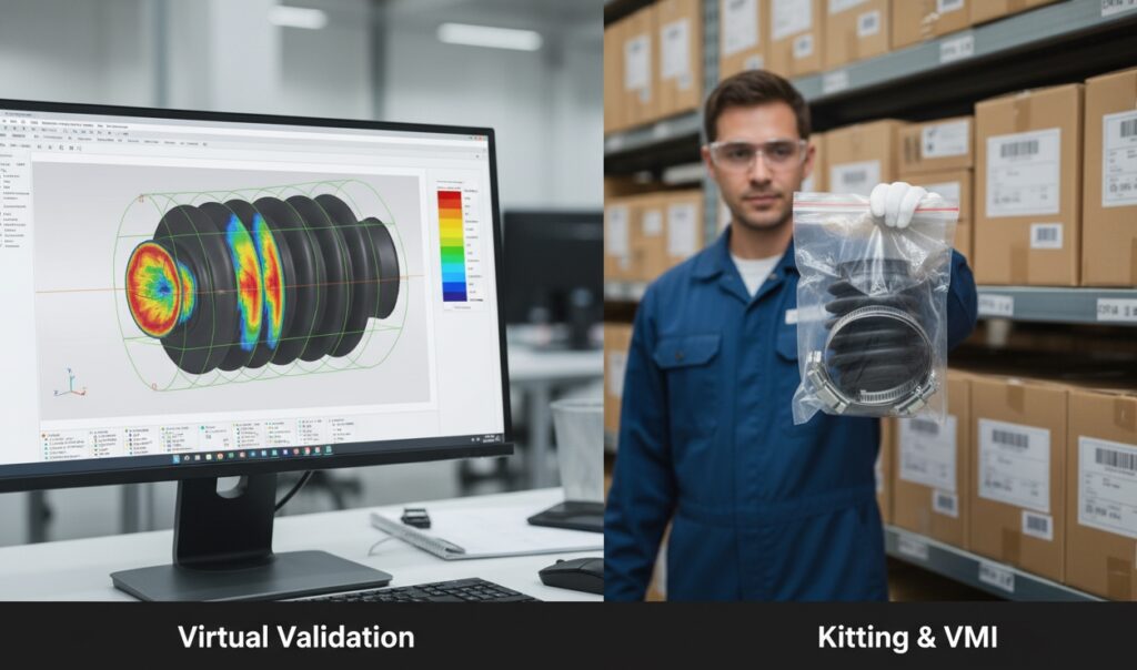 • The Kit: We deliver “Ready-to-Install” Kits: One rubber bellow + two pre-sized stainless steel hose clamps (or zip ties), sealed in a single bag. This reduces BOM complexity and speeds up the assembly line.