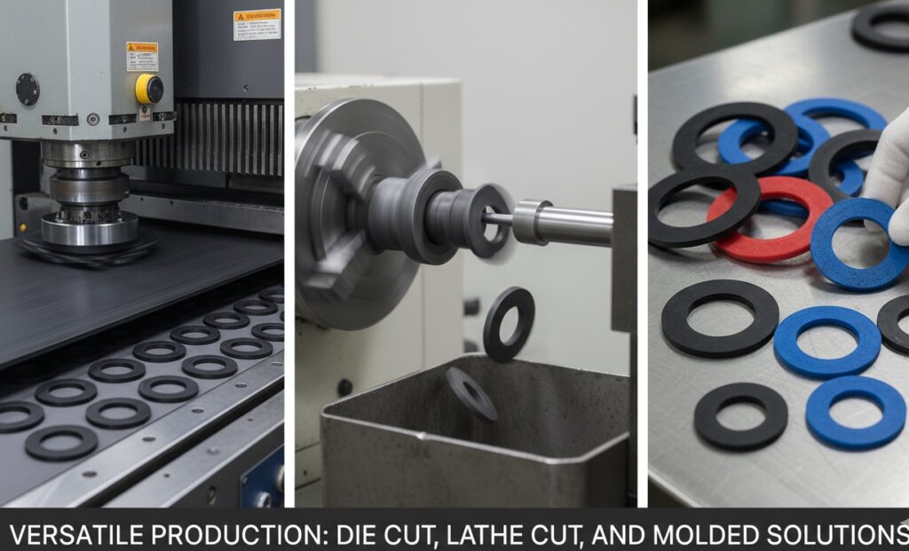 Precision Manufacturing, Not Just Distribution When sourcing industrial seals, one size rarely fits all. At RiseUp Rubber, we specialize in manufacturing custom rubber washerstailored to your exact dimensions and environmental requirements. Unlike distributors who force you to choose from a catalog, we produce customized washers using three distinct manufacturing technologies to optimize your cost and performance.