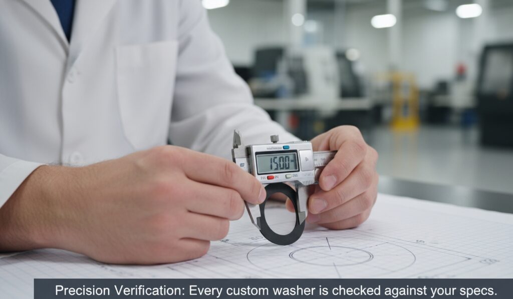 3. Standard vs. Custom Sizes While we do manufacture standard sizes (M3, M4, M6, etc.), our strength lies in customization. You don’t need to limit your design to a fixed catalog. Refer to the simplified rubber washer size chart below for common bolt compatibilities, but remember: we can cut any O.D. and I.D. combination you need.