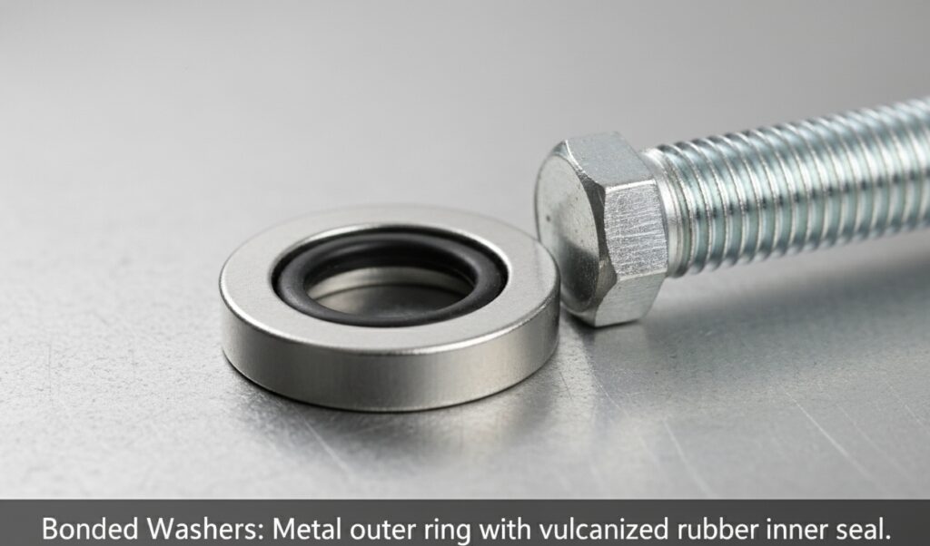 Standard flat washers are ideal for cushioning and low-pressure sealing. However, for hydraulic systems or critical fluid containment, plain rubber may “squeeze out” under torque. RiseUp Rubber offers advanced washers with rubber seal designs (often referred to as Bonded Seals or Dowty Washers) that combine the structural strength of metal with the sealing power of elastomer.