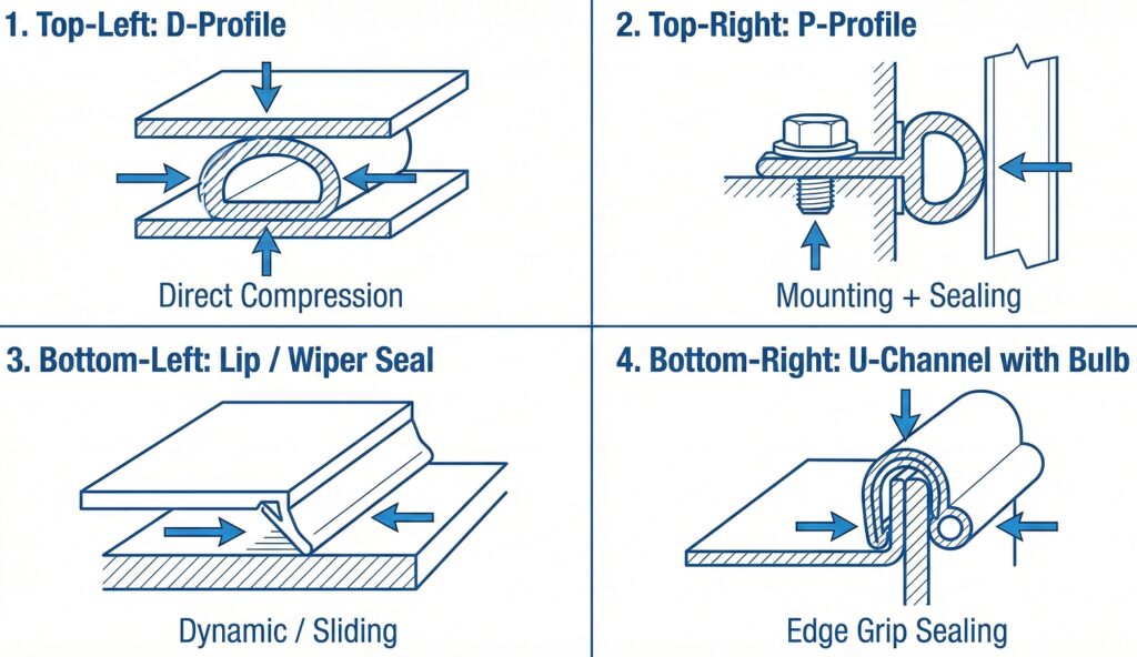The shape of a rubber sealing isn’t arbitrary; it dictates how the seal reacts to pressure and movement. Choosing the wrong profile leads to gaps, high closure forces, or premature wear.