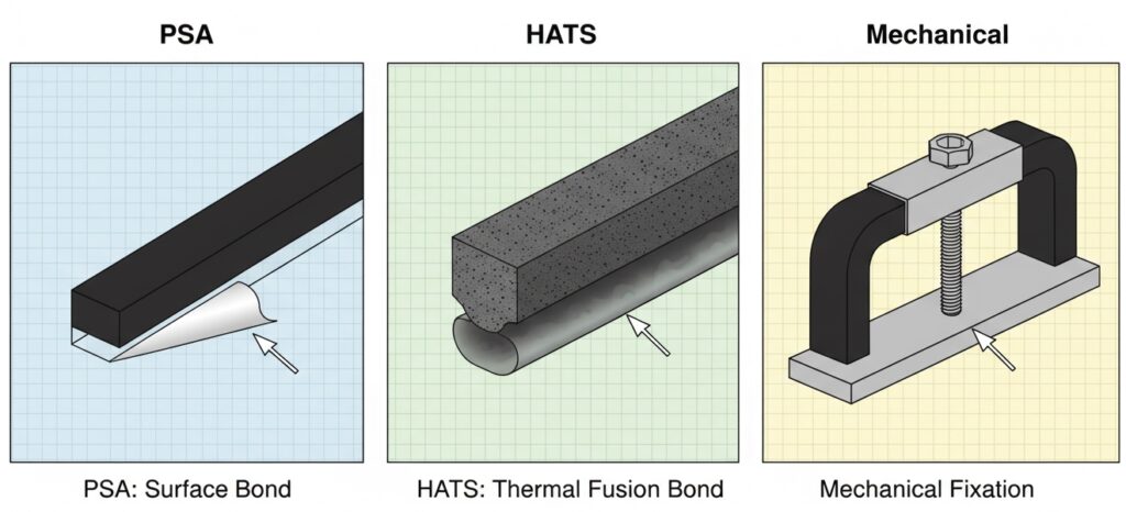 • Q: How long does the adhesive (HATS/PSA) last? A: HATS (Heat Activated) is designed to be permanent and will often outlast the rubber itself. PSA (Peel-and-Stick) typically has a lifespan of 5-10 years depending on UV exposure and temperature cycling.