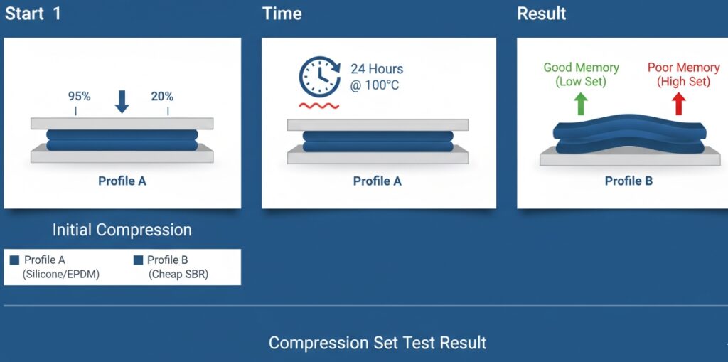 • Low Compression Set (Good): The rubber acts like a spring with “good memory.” When you open the door, the seal bounces back to its original shape.