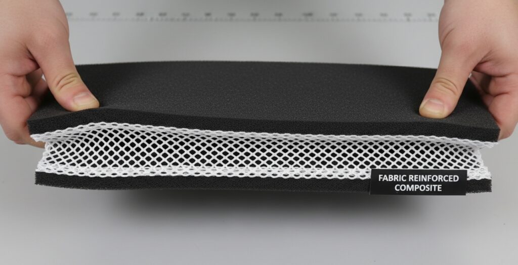 Standard foam can stretch or tear under tension. For demanding applications, we engineer composite solutions. By bonding fabric or mesh to the cellular rubber, we create an industrial sponge with superior tensile strength and dimensional stability.