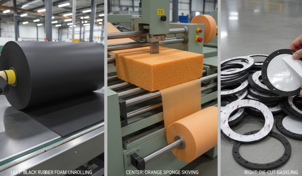 Q: What is the difference between “Sponge” and “Foam”? A: In the industry, they are often used interchangeably. However, technically, sponge rubber refers to expanded elastomers (like EPDM or Neoprene) which have high elasticity and “memory.” Foam rubber can sometimes refer to plastics (like PE or EVA). We specialize in high-grade elastomeric sponge material that retains its seal over time.
